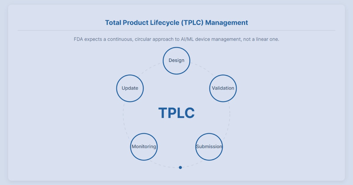 AI-enabled device software is no longer assessed at a single regulatory milestone. FDA’s 2025 guidance reflects a shift toward continuous oversight, where performance, safety, and governance must be demonstrated throughout the product lifecycle.